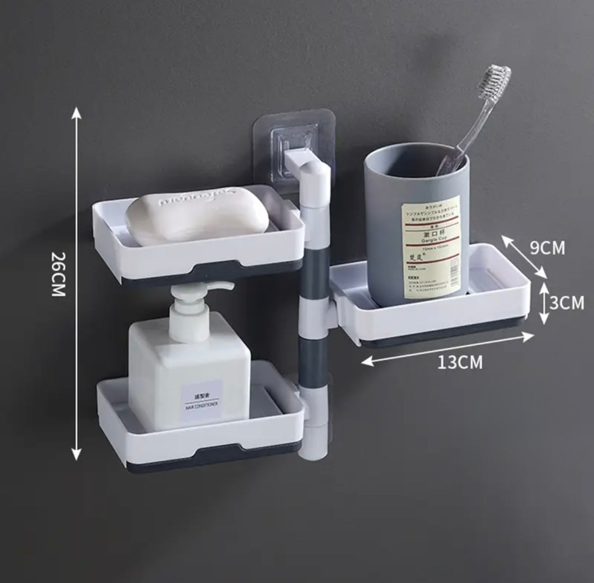 Dale un toque moderno y práctico a tu baño con la Jabonera Giratoria de Pared 3 en 1, diseñada para mantener todo en orden sin necesidad de perforar tus paredes.